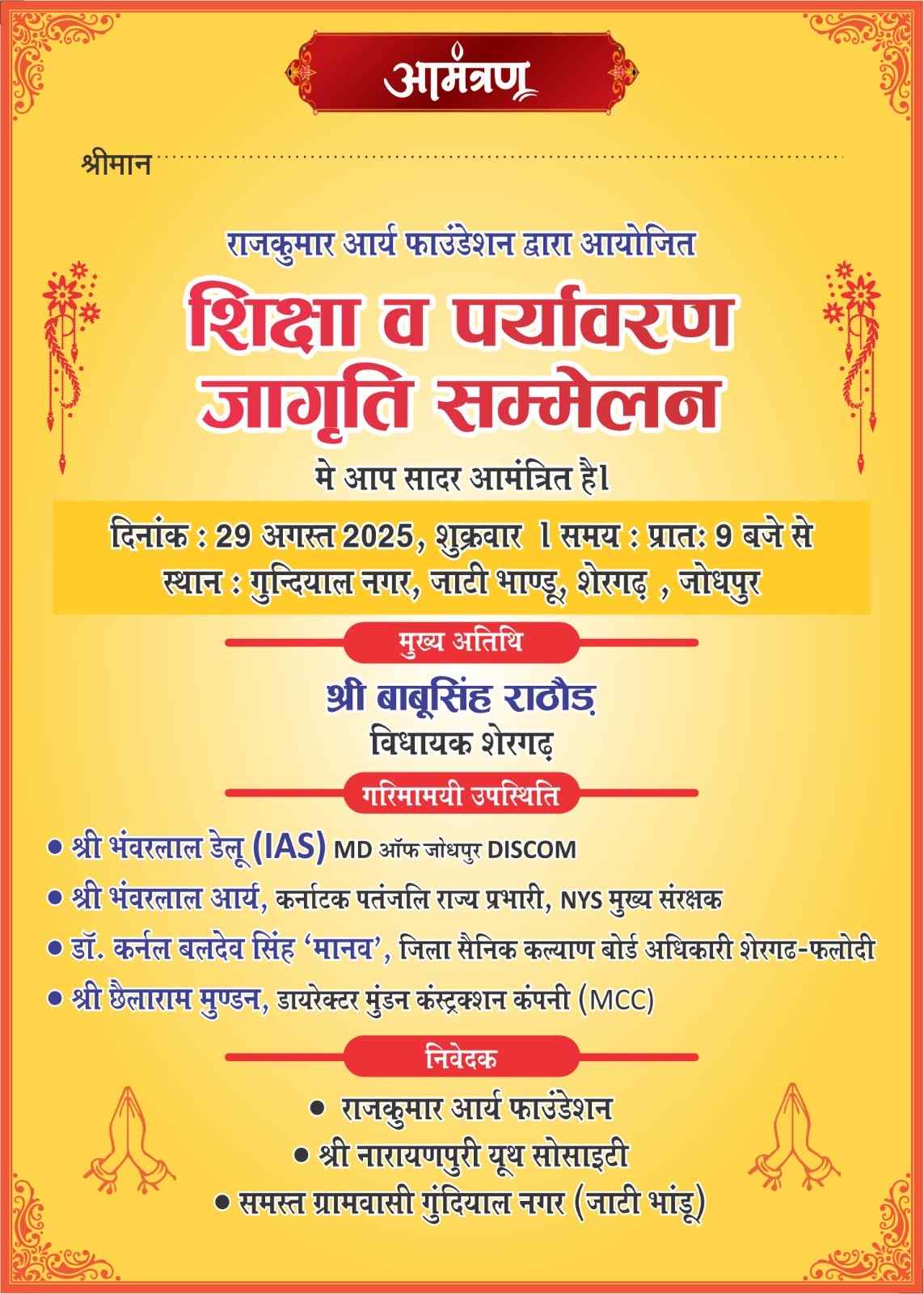 शेरगढ़ विधायक आदरणीय Babusingh Rathore साहब, NYS मुख्य संरक्षक आदरणीय Bhawarlal Arya साहब, जोधपुर DISCOM के MD श्री भंवरलाल डेलू सर, NYS मुख्य संरक्षक आदरणीय कर्नल Baldev Singh Manav सर, मुण्डन कंस्ट्