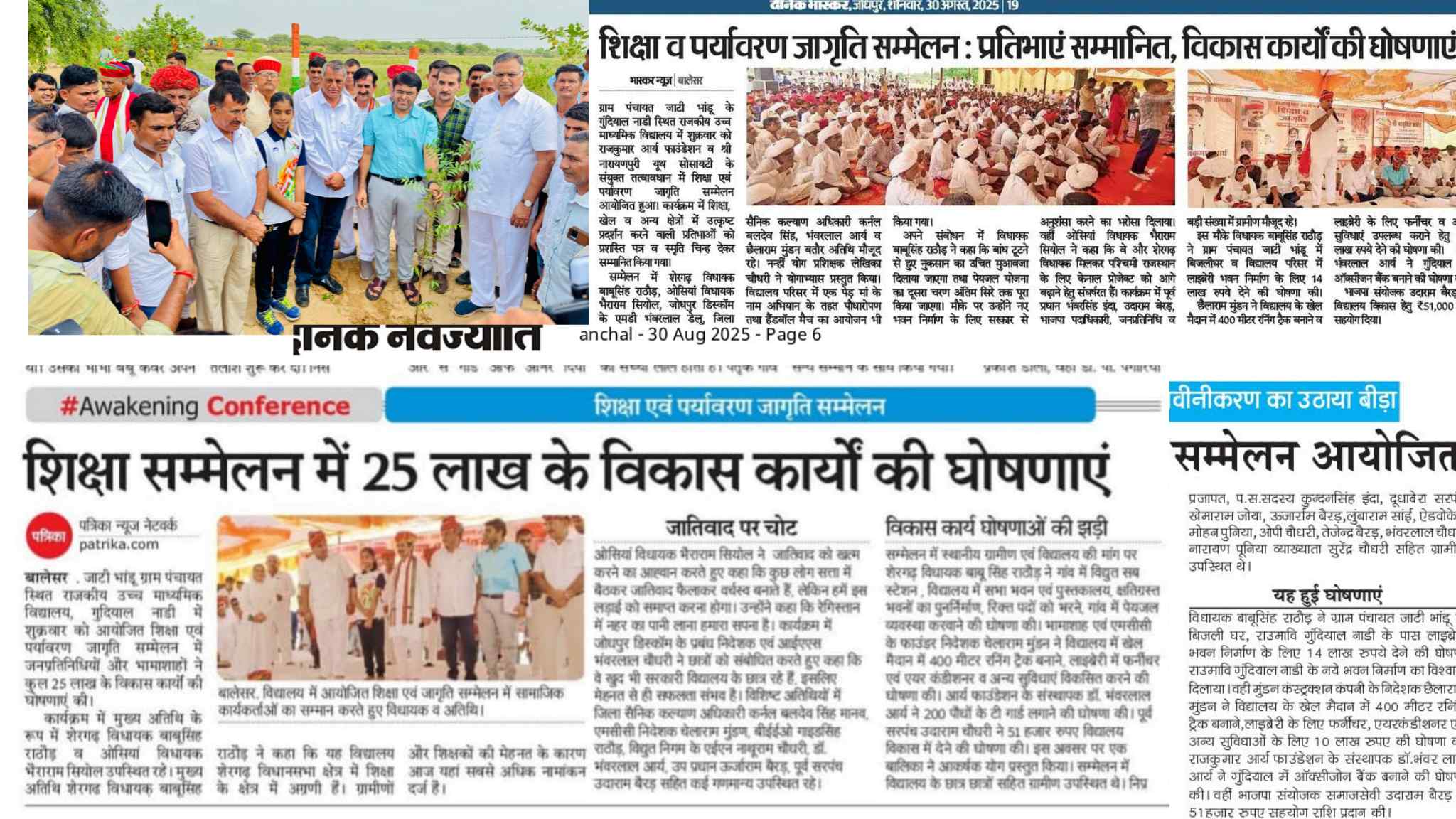 श्री नारायणपुरी यूथ सोसायटी के सहयोग से रोड़वा कल्ला, कल्याणपुर (बालोतरा) में आयोजित विशाल वृक्षारोपण और जनजागृति कार्यक्रम आयोजित किया।